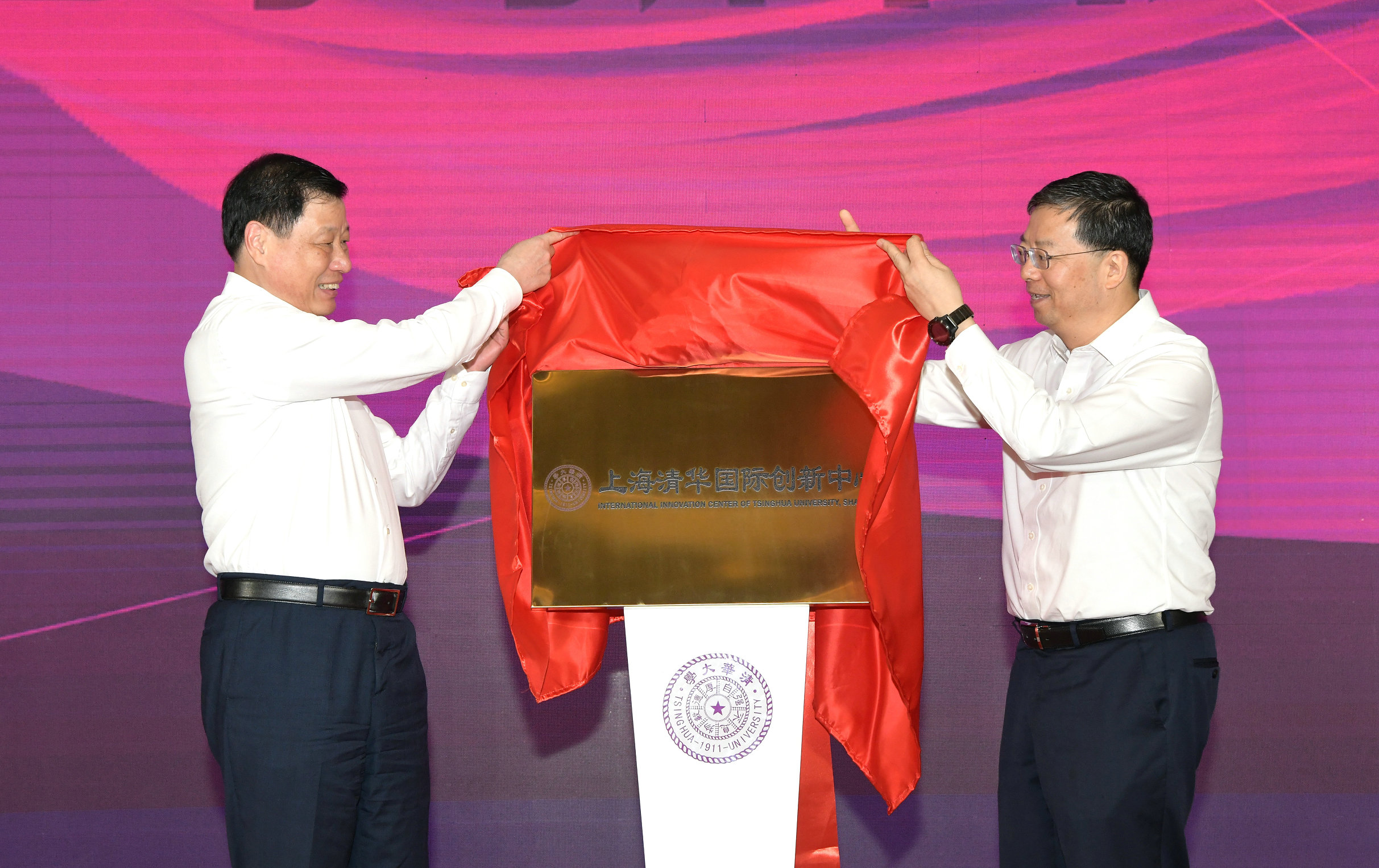 上海市委副書記、市長應勇(左),清華大學校長邱勇為上海清華國際創新中心揭牌 陳正寶 攝