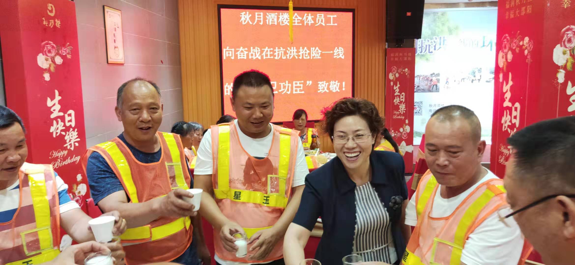今年7月,邵陽市再次遭遇特大洪水襲擊。看到環衛工人忙碌的身影,謝純輝熱淚盈眶:“沒想到這麼快就恢復了原貌,他們是守護家園的功臣!”萌生了請環衛工人吃飯表示感激的念頭。7月12日,110餘名環衛工人來到“感恩宴”現場,燦爛的笑容,暖暖的情誼在眾人心中流淌。