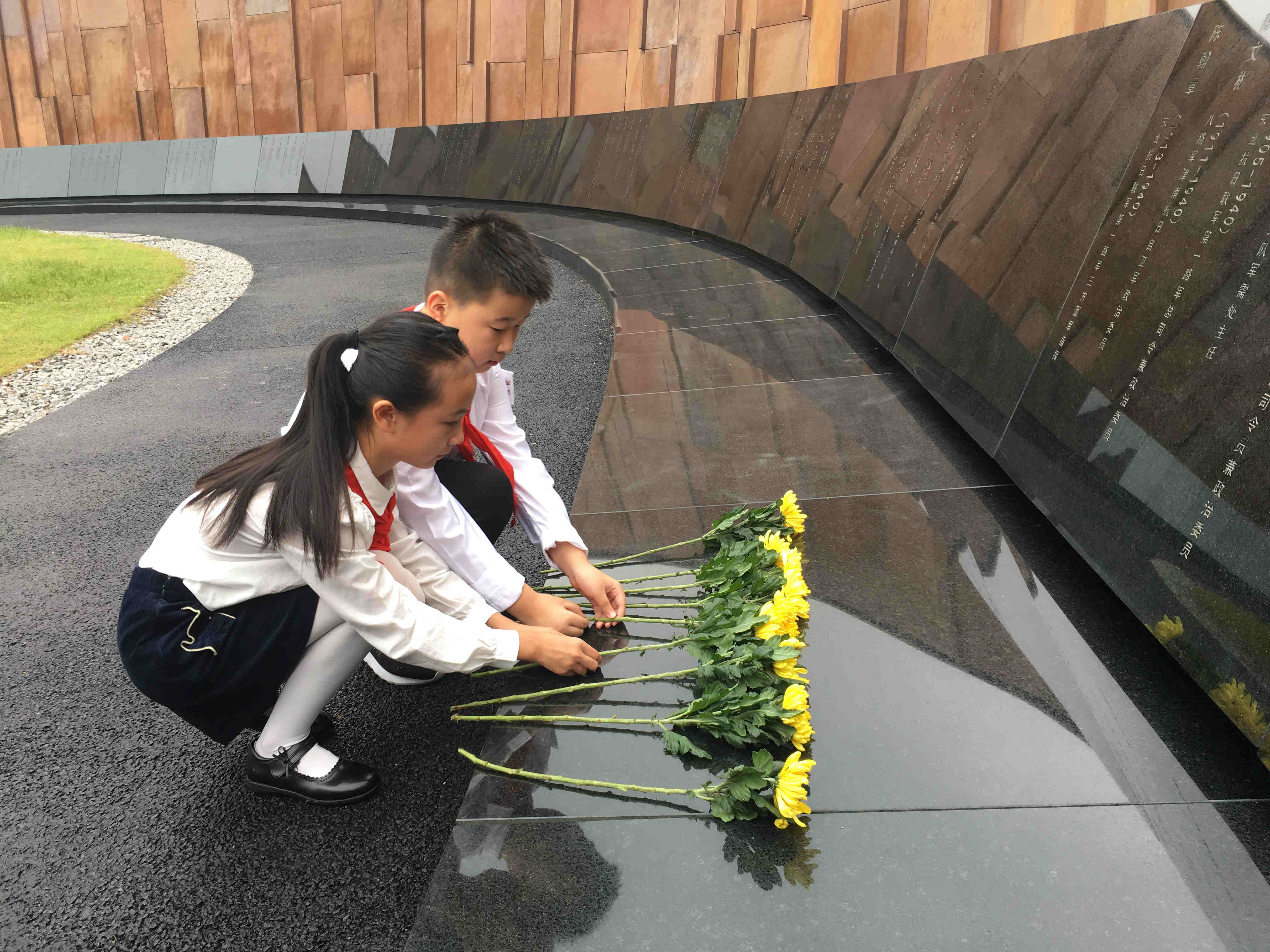 小學生代表向楊靖宇烈士紀念碑敬獻獻花
