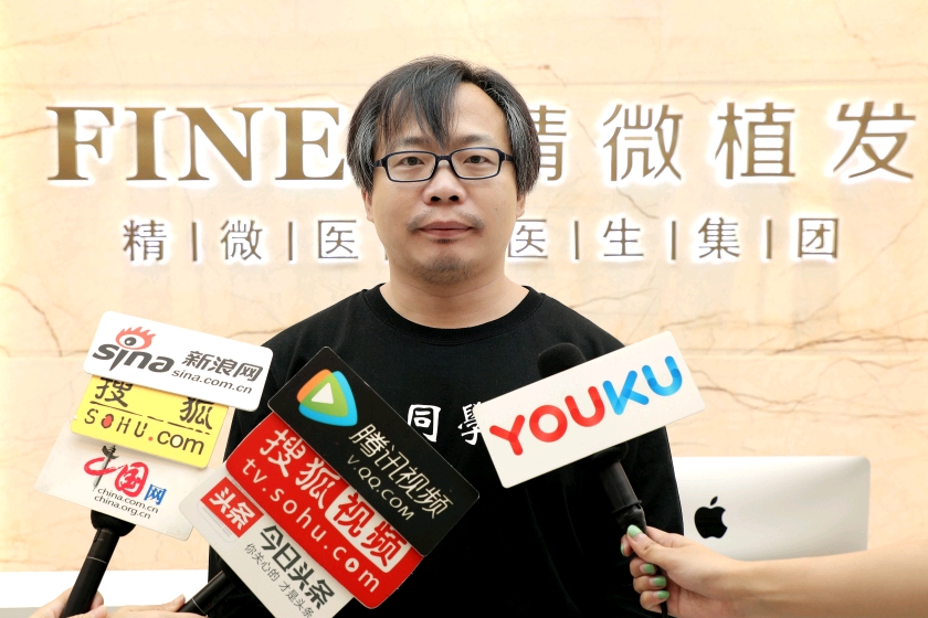 「老黃雞湯」網紅老黃在深圳精微植髮接受媒體採訪