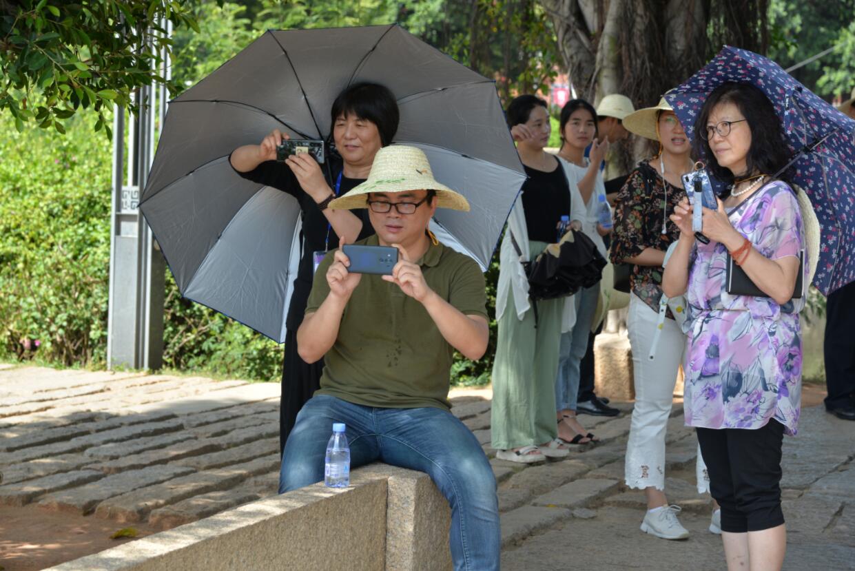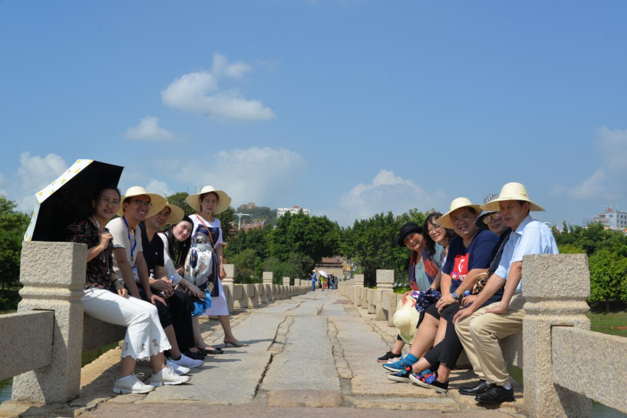 「全球商報聯盟媒體南安行」採訪團一行在五里橋拍照