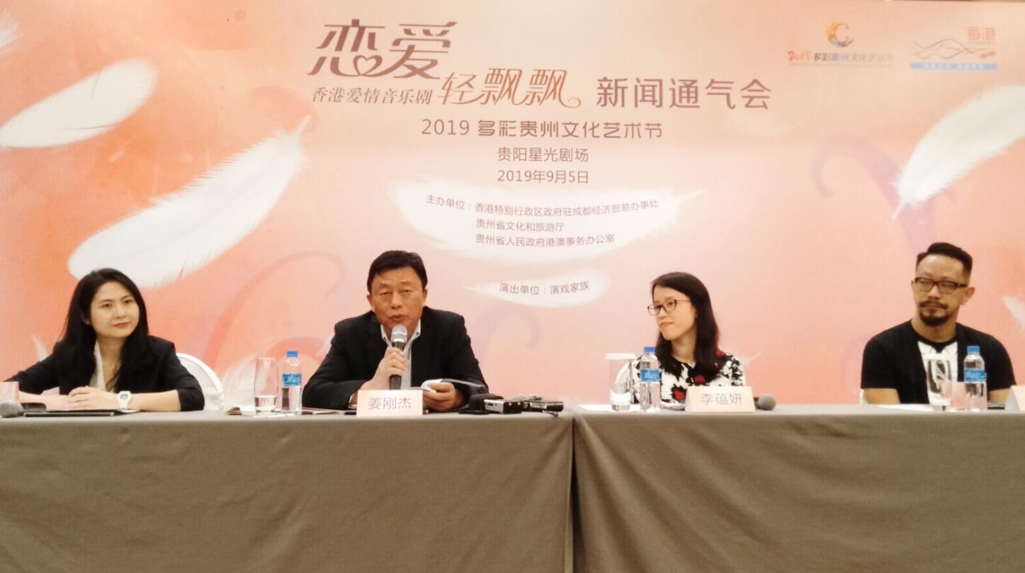 新聞發佈會上,香港特區政府駐成都經濟貿易辦事處主任李蘊妍說,粵語流行曲是富有香港特色的文化藝術,透過地道的歌詞去描述香港人的心聲和故事。「演戲家族」這次演出的音樂劇《戀愛輕飄飄》,融合多首代表着不同年代的粵語流行金曲。我們期待貴州的朋友在欣賞音樂劇的時候,可以從熟悉的旋律及歌詞,加深了解香港的話劇及流行音樂文化。