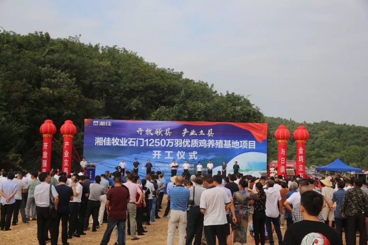 【香港商報網訊】記者 唐勇平 李銀明 報導: 9月3日上午,湖南湘佳牧業石門1250萬羽優質雞養殖基地項目在新鋪鎮中和鋪村舉行開工儀式,標誌着湘佳牧業優質雞養殖邁入了一個快速發展的新時期。