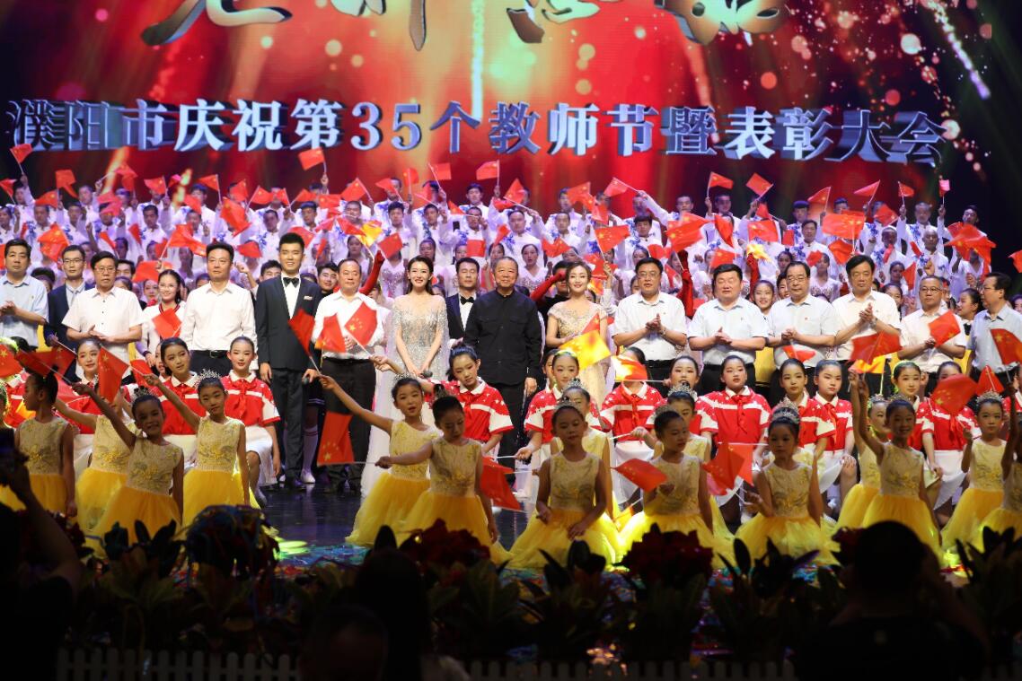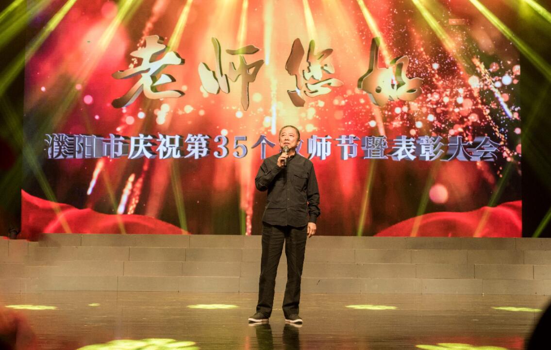 建業集團董事長鬍葆森在致辭中深情地講到,自己的根在河南,建業集團有今天的成就離不開自己當年在濮陽幼兒園、小學、中學,以及下鄉的三年中得到的培養,在濮陽第35個教師節及70華誕來臨之際,他以此捐贈回報家鄉。