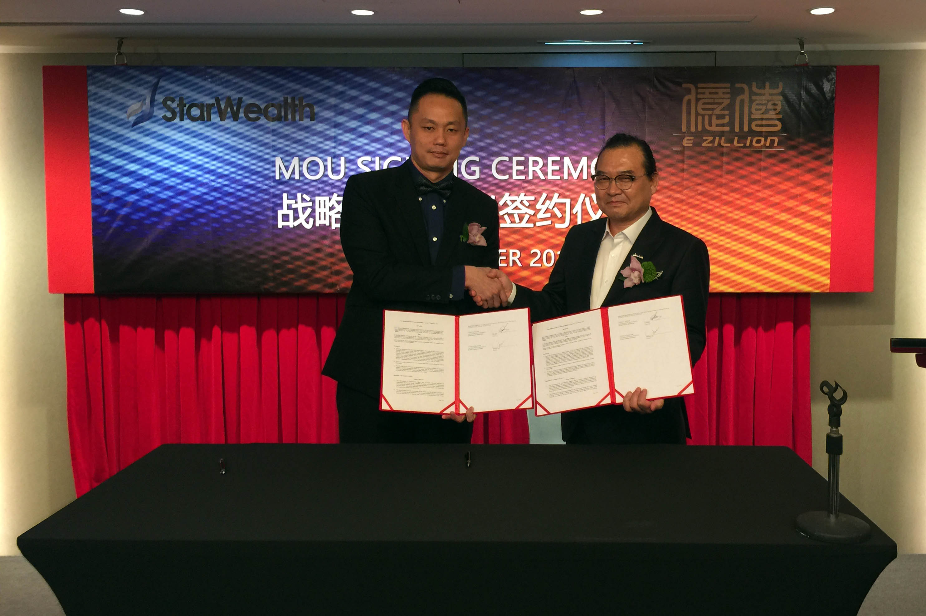 簽約儀式在與會來賓及雙方高層見證下完成,億僖資本國際與星耀集團在九月五日啟動了第一階段的合作關係。雙方最高管理層深信在未來的發展中彼此 將能在互惠互利的前提下相互配合,朝向共同的目標邁進!