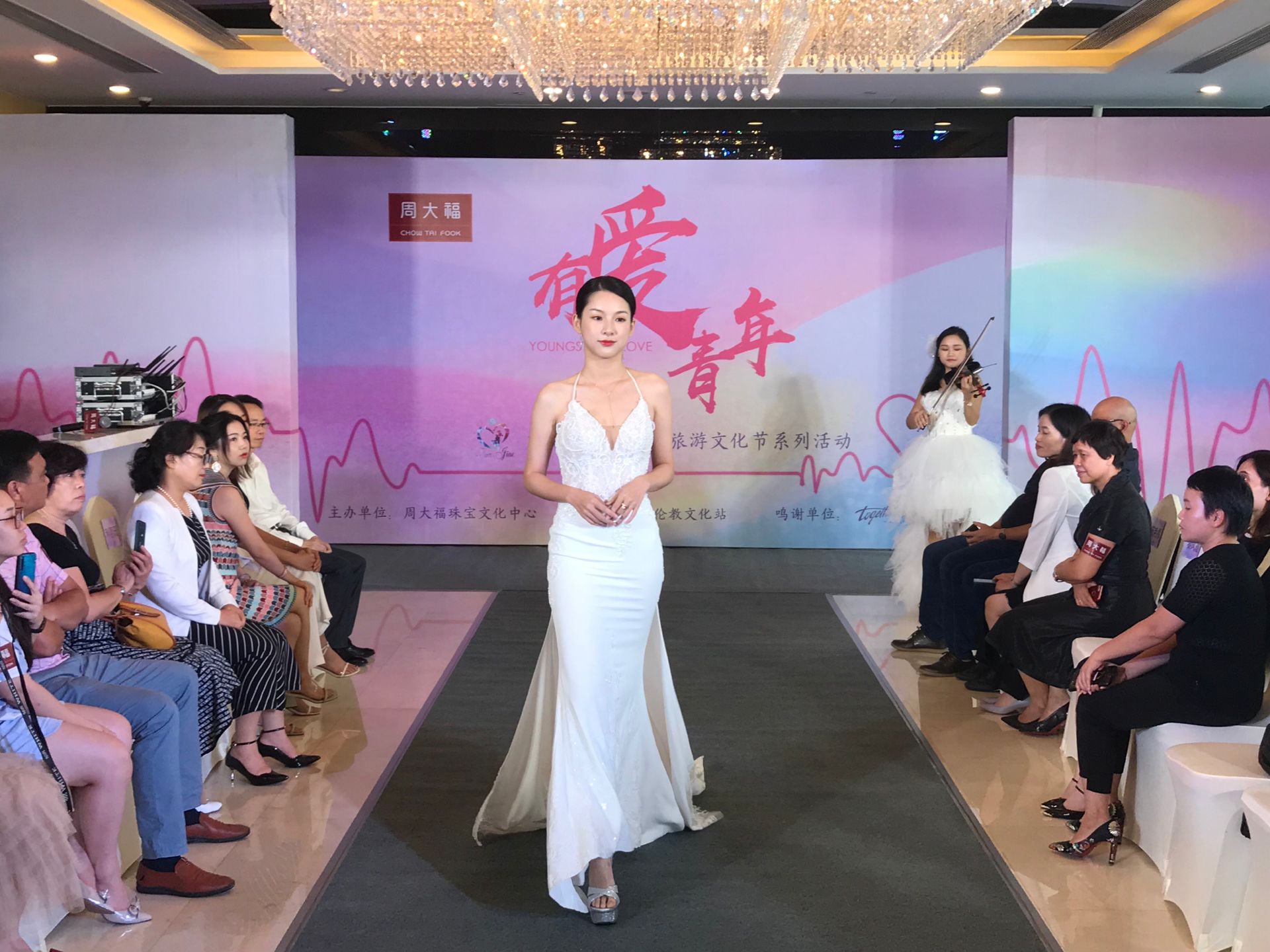 活動壓軸戲是由周大福聯合EDU BRIDE婚紗禮服高級定製共同為大家呈獻婚紗珠寶秀。