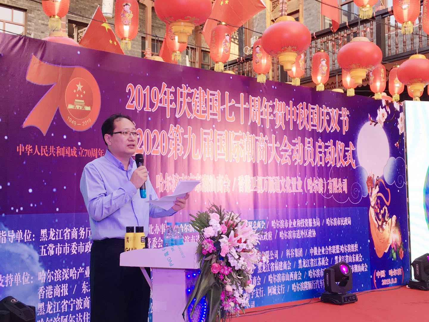 【香港商報網訊】記者 張曉磊 報導:9月8日晚,由哈爾濱市廣東潮汕商會與香港衛視萬順通文化置業(哈爾濱)有限公司共同主辦的慶祝新中國成立70周年賀中秋國慶雙節暨第九屆國際潮商大會動員啟動儀式在道外區舉行。此次活動拉開哈爾濱市廣東潮汕商會與合作單位及會員單位合作共贏的序幕,造勢預熱。