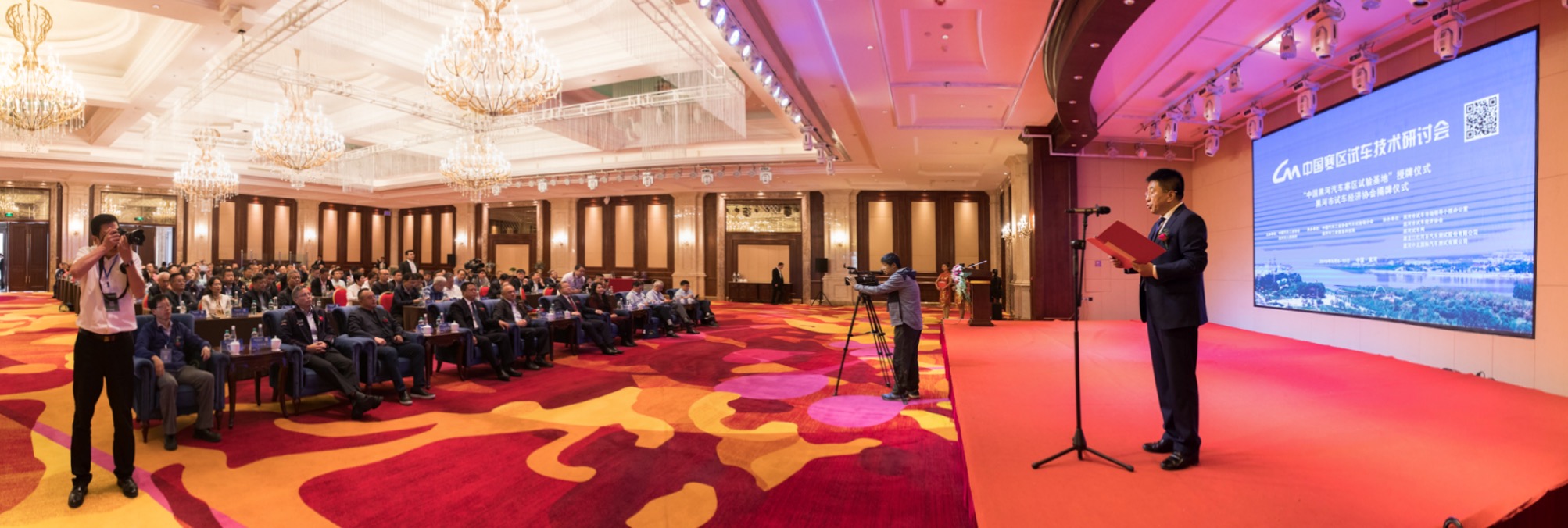 黑河市委副書記、市長馬里出席研討會並致辭,中國汽車工業協會首席專家於光,中國汽車工業協會試驗場分會處王維秘書長,副市長彭海濤及來自國內各地70餘家試車行業機構的150餘名負責人及專家學者參加了本次研討會。