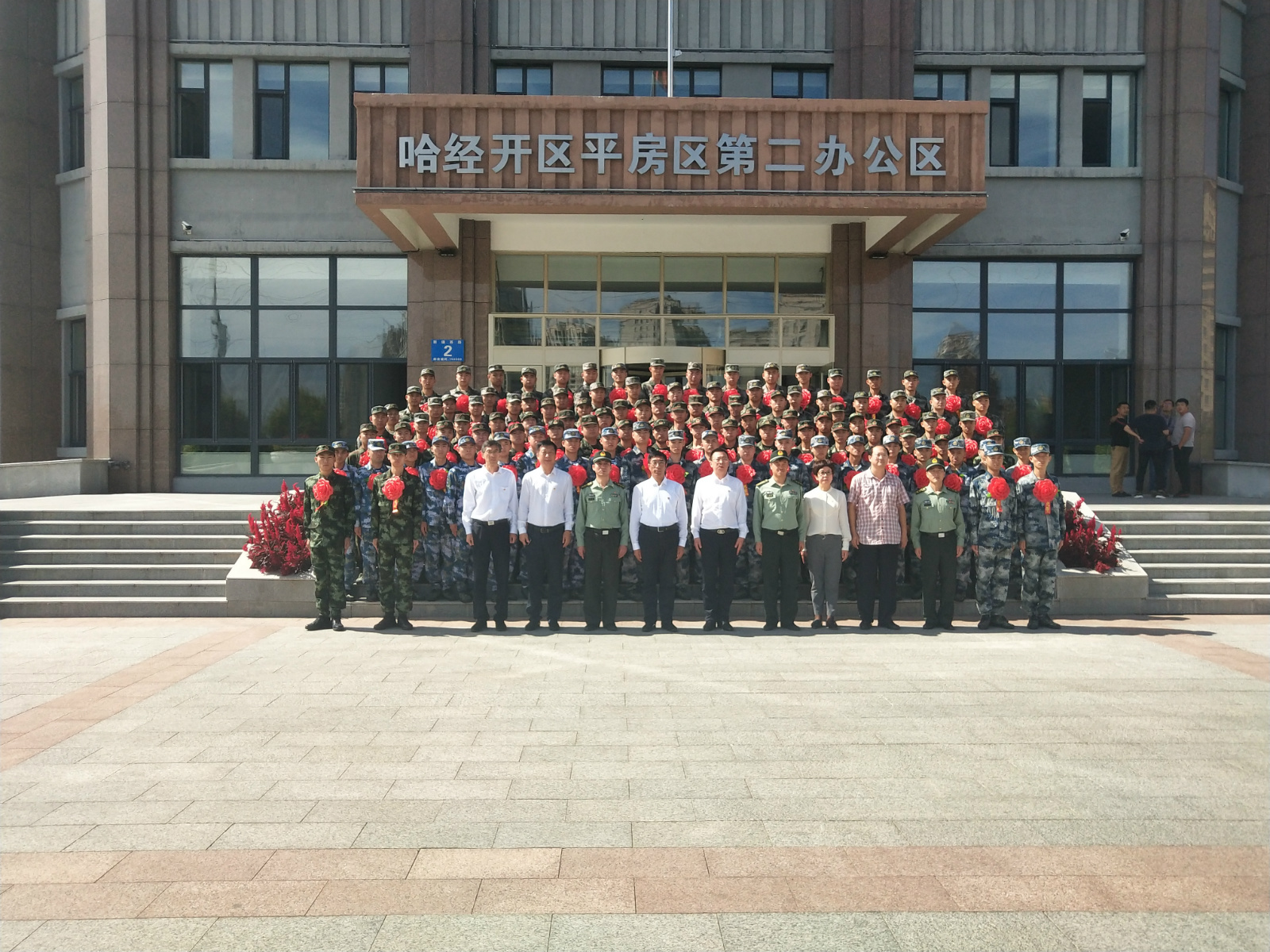 哈爾濱市委常委、平房區委書記劉興閣,區委常委、副區長於振,區委常委、人武部政治委員王慶堂,等領導與社會各界代表,以及部分家長代表參加新兵歡送大會。平房區委常委、人武部政委王慶堂主持會議。