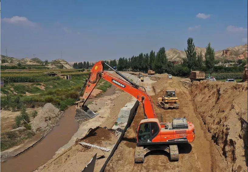 白銀至青城古鎮旅遊公路改建工程項目經理任發喜告訴記者,這條路沿河而建,在施工過程中,既不能影響沿線村民的農業生產灌溉,又要確保車輛通行,尤其是打路肩擋牆時,金溝河水總是倒灌入坑槽內,只能用水泵將水抽出後再施工,難度很大。
