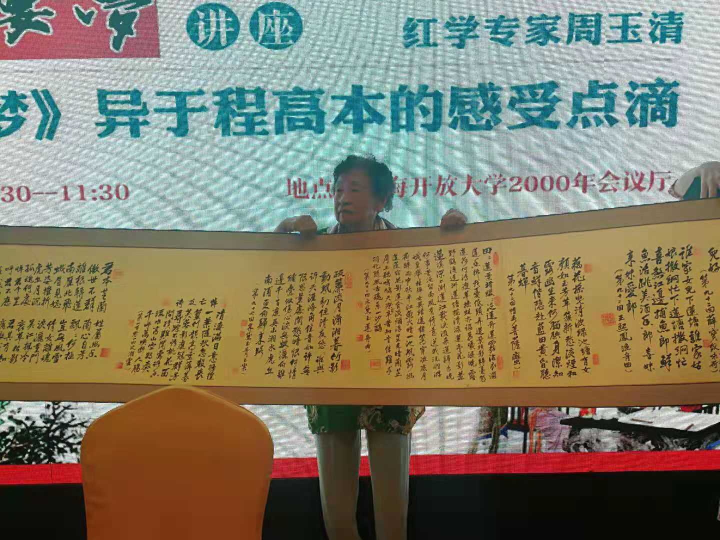 紅學專家周玉清展示自己創作的九米長詩書長卷