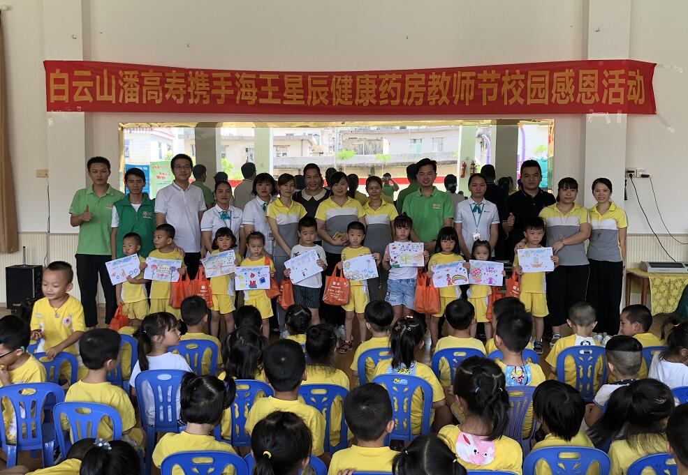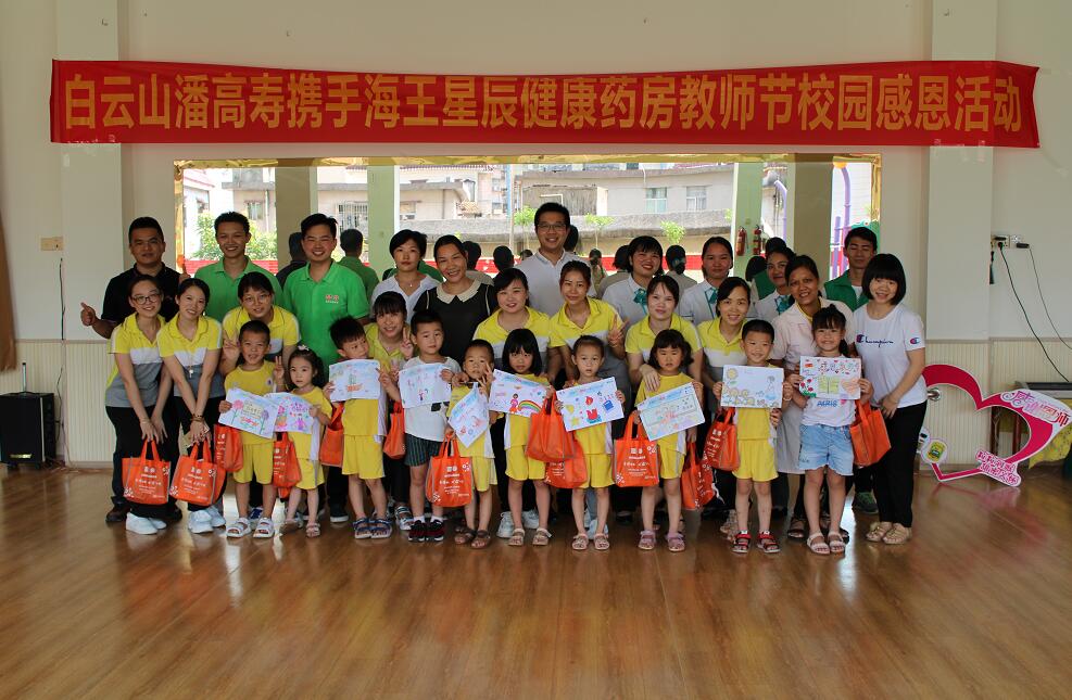 在教師節到來之際,白雲山潘高壽葯業攜手海王星辰健康藥房在深圳布吉禾沙坑幼兒園舉辦教師節公益活動。小朋友在潘高壽綠肺基金志願者的引導下,用五彩斑斕的畫筆為老師製作節日禮物!繽紛的色彩代表小朋友們對老師的祝福!