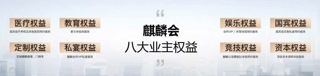 鑒於此得天獨厚的鄰里關係,金眾麒麟公館攜手資本市場學院、麒麟山莊、紫荊山莊等,資源共用,共建美好生活場景,貼心搭建業主圈層平臺-麒麟會,為業主提供八大專屬服務。