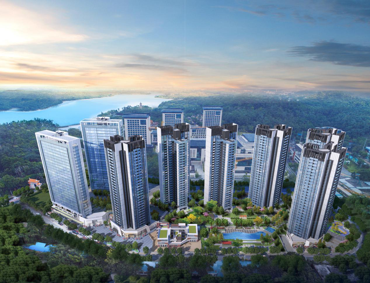 沿大沙河溯源而上,途經深圳灣、科技園、留仙洞、西麗湖,形成深圳的科創中軸線,而金眾麒麟公館,正位於科創中軸線的源頭,落子美麗的西麗湖畔,得塘朗山、麒麟山、羊臺山三山環抱之勢,湖光山色,佳境天成,深灣之上,人文雅宅。