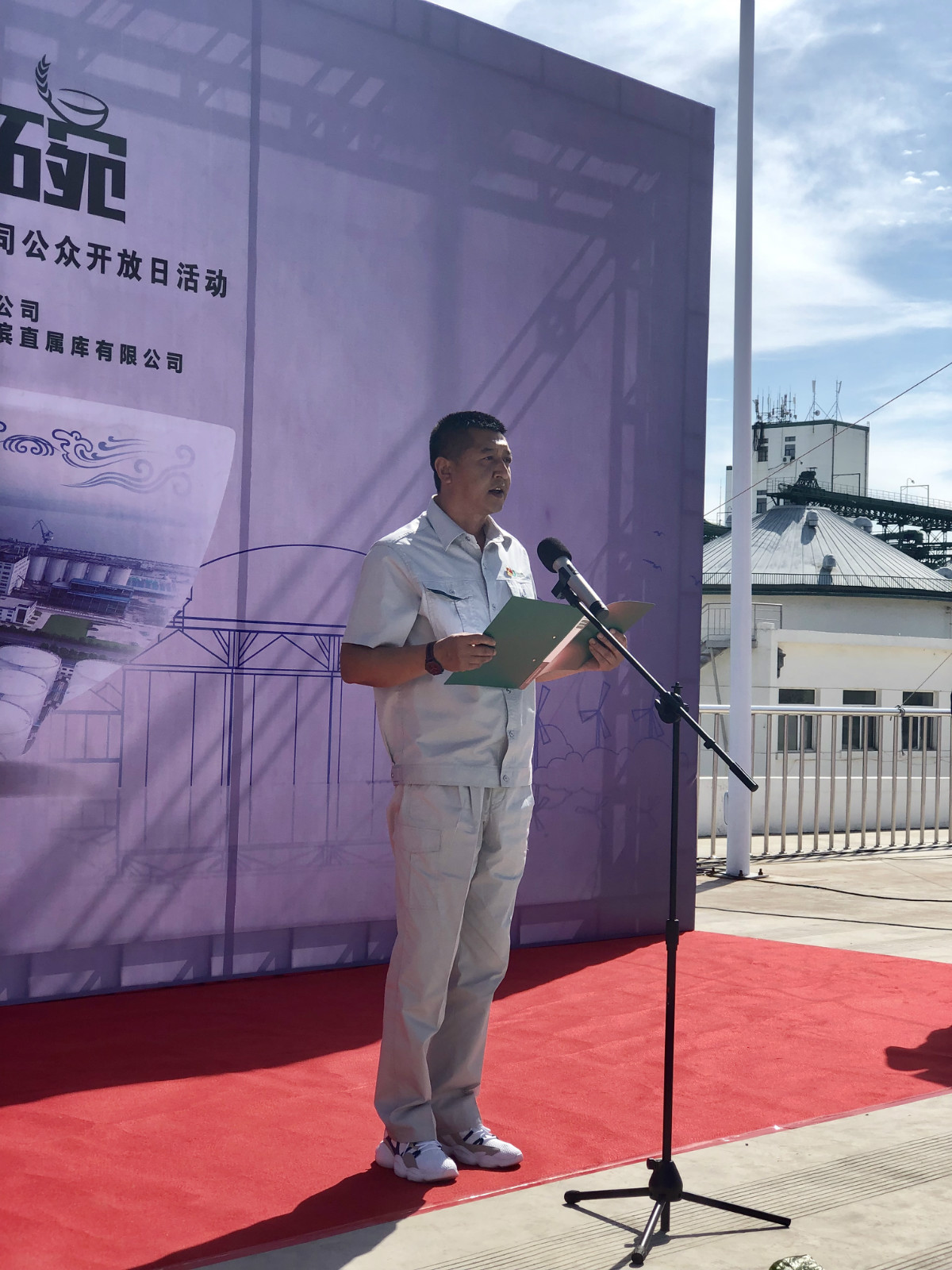 當天陽光明媚,「手中緊握中國飯碗,肩上扛起大國糧倉」的紅色條幅格外醒目,開場儀式在該公司廣場的熱烈氣氛中拉開序幕。中儲糧哈爾濱直屬庫有限公司黨委書記、總經理高永波致辭時稱今天我們哈爾濱直屬庫有限公司非常榮幸作為第二屆公眾開放日的承辦單位,向社會公眾開放,這是集團公司黑龍江公司對哈爾濱直屬庫的信任和肯定,更是對哈爾濱直屬庫的鼓勵與鞭策。同時希望在場的來賓向我們提出寶貴的建議,特別希望各界代表全方位、多角度檢閱中儲糧規範化管理、科技創新、綠色發展的企業經營理念模式,近距離直觀感受中儲糧為守好大國糧倉做出的不懈努力。高永波還稱,希望大家集思廣益,共同構築國家糧食安全偉大工程。