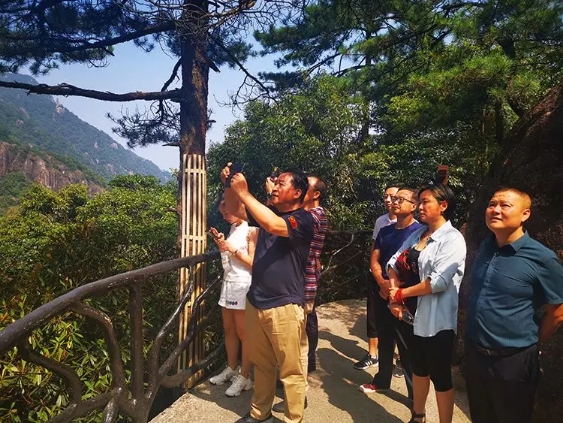 在三清山期間,姜昆一行先後來到核心景區和三清山地質公園博物館等地實地采風。三清山美輪美奐的自然景觀和優越的生態環境令他們流連忘返、沉醉其中。面對著三清風光,姜昆豎起大拇指連連點贊。而對於三清山當前旅遊業飛速發展的態勢,他也給予了充分的肯定和讚賞。