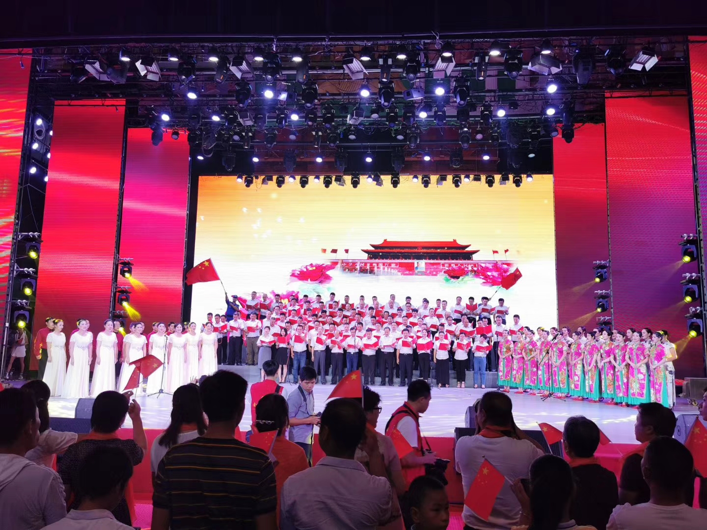 慶祝演出在大合唱《我和我的祖國》中落下帷幕,全場臺上台下合唱《我和我的祖國》,聲音久久回蕩,全場雷鳴般的掌聲經久不息。
