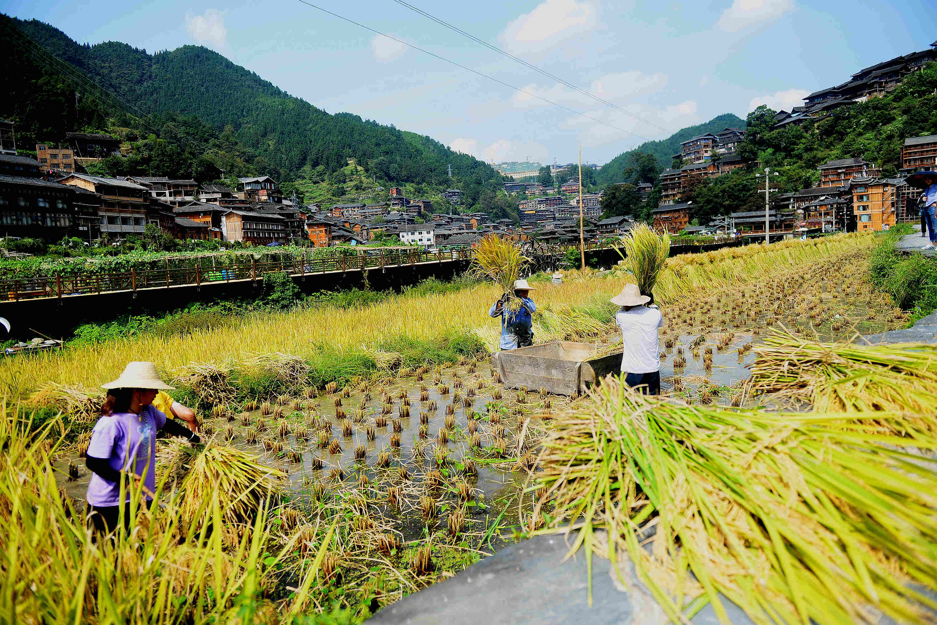 相約西江苗寨田園觀光區,在金黃稻浪中感受豐收喜悅,在梯田秋韻里享受田園詩意,正當時。(黃慶松)