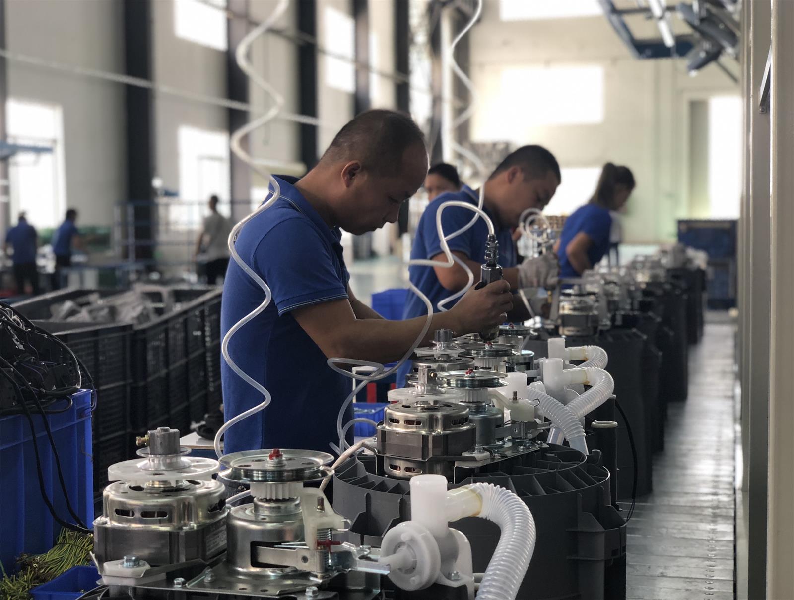 粵桂智能家電產業集聚區內,員工正在組裝洗衣機
