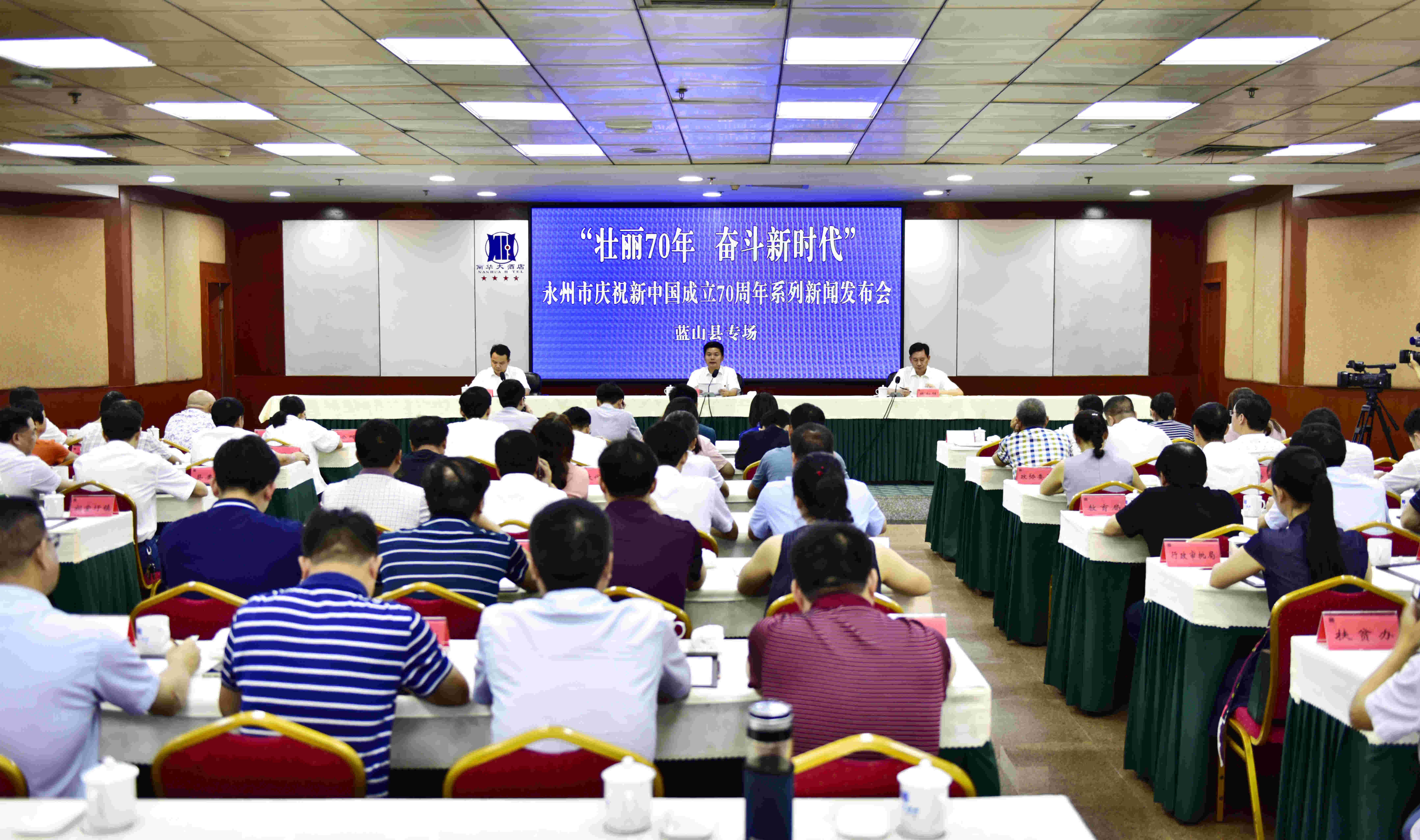 【香港商報網訊】記者 唐勇平 報導: 9月17日,湖南永州市「壯麗70年·奮鬥新時代」系列新聞發佈會在永州舉行藍山縣專場,展示70年來藍山縣經濟社會發展的變化。藍山縣委書記秦志軍發佈新聞並與縣長魏和勝就藍山縣七十年發展等問題答記者問。發佈會的主題是「砥礪奮進新時代 開放崛起新藍山」,既融通了藍山的歷史與今天,也彰顯了藍山走向更遠、更光輝未來的新氣象,體現了藍山43萬人民的奮進方向,也昭示着三藍大地更加美好的未來。