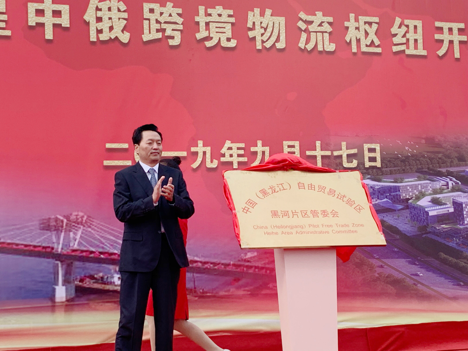 黑龍江省委常委、常務副省長李海濤為「中國(黑龍江)自由貿易試驗區黑河片區」掛牌