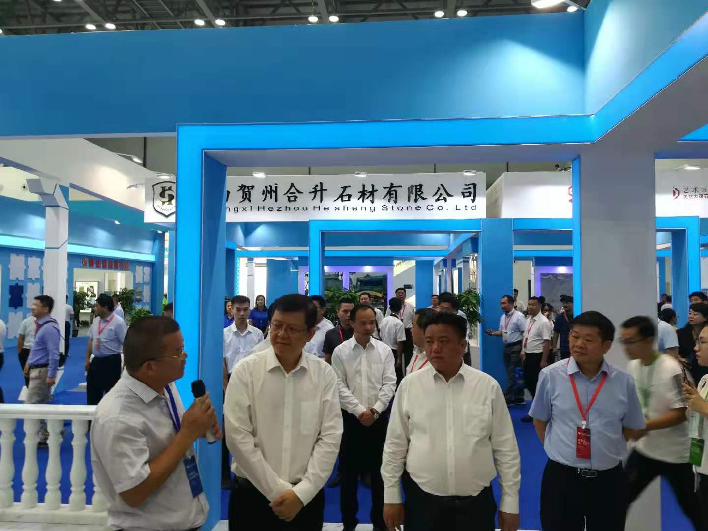 賀州市委書記李宏慶(左二)、賀州市市長林冠(右二)考察參展企業