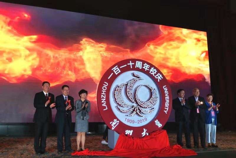 蘭州大學領導、特邀嘉賓上台共同點亮蘭州大學110周年校慶LOGO