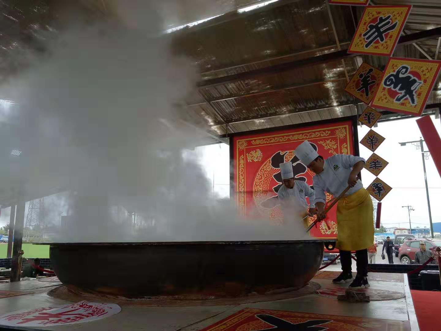 慶陽環縣羔羊肉體驗館內“隴原羔羊第一鍋”現場製作