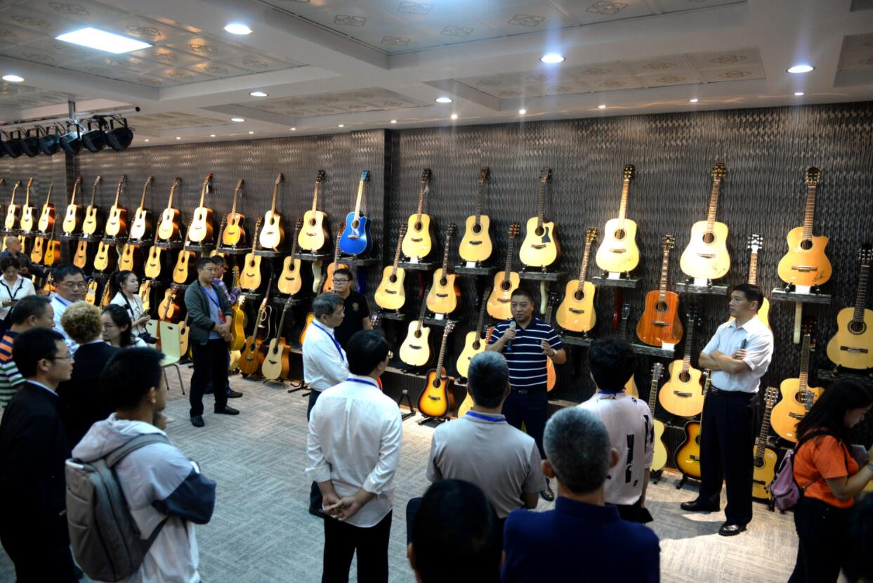 吉他企業相關負責人向嘉賓介紹企業生產情況