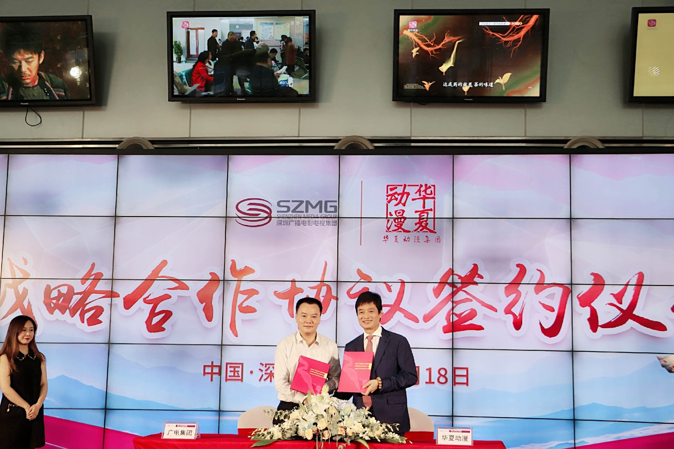 【香港商報網訊】記者 蘇偉 報導:9月18日下午,深圳廣播電影電視集團與華夏動漫形象有限公司在深圳市福田區廣電大廈隆重舉行了戰略合作簽約儀式,活動吸引大批相關行業從業人員到訪,深圳市委宣傳部副部長劉文斌、深圳市羅湖區文化廣電旅遊體育局文產辦負責人周海濤、深圳廣電集團總裁岳川江、深圳廣電集團總經理劉璋飆、華夏動漫形象有限公司董事局主席莊向松等代表共同出席活動。此次簽約儀式主要宣佈了深圳廣電集團與華夏動漫集團正式達成戰略合作關係,雙方將整合業內頭部資源,共同推動深圳動漫文化產業的高品質發展。