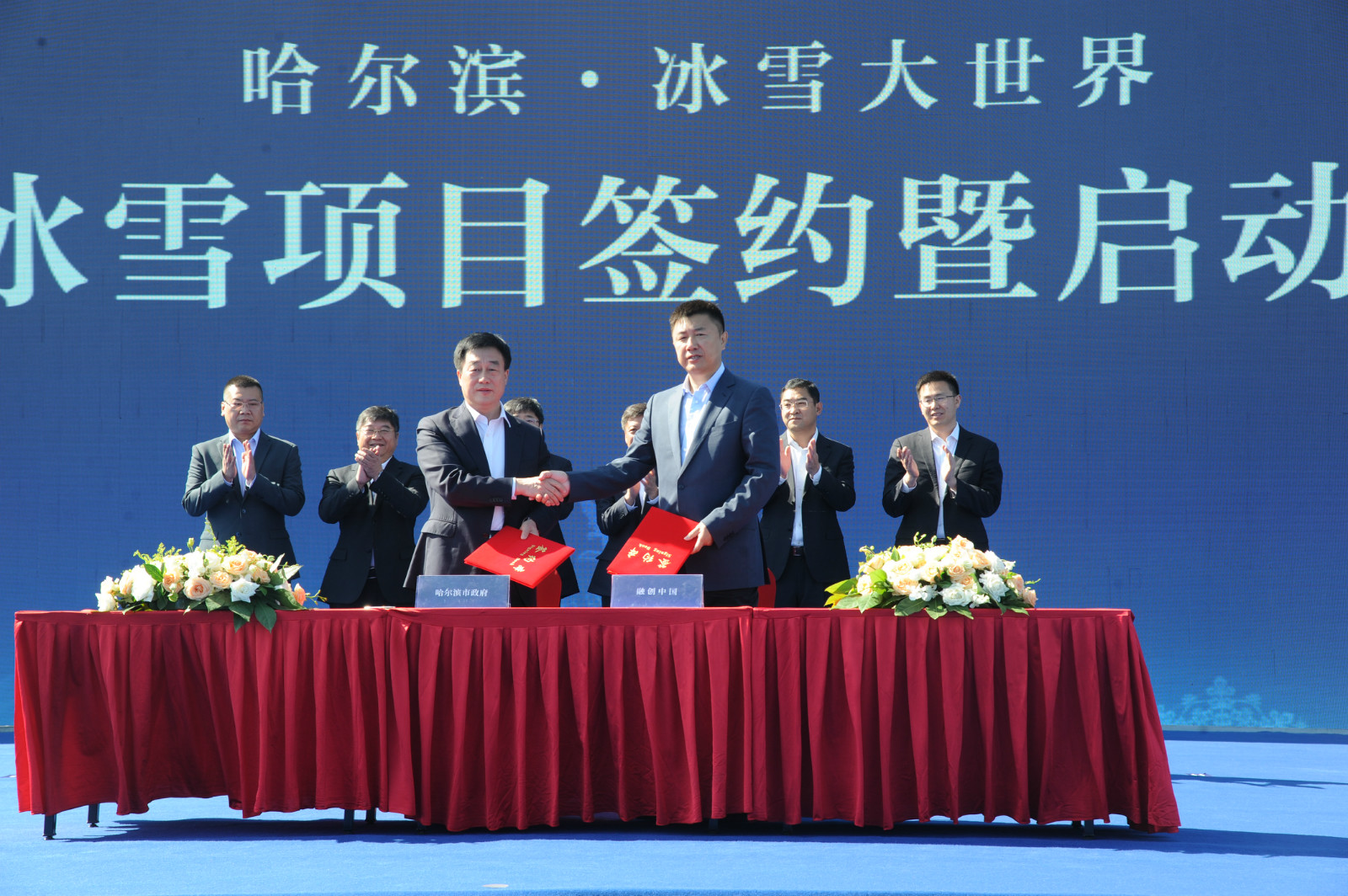 【香港商報網訊】記者 張曉磊 報導:9月20日上午,黑龍江哈爾濱市政府與融創中國控股有限公司共同合作的哈爾濱·冰雪大世界四季冰雪項目簽約儀式在冰雪大世界舉行。