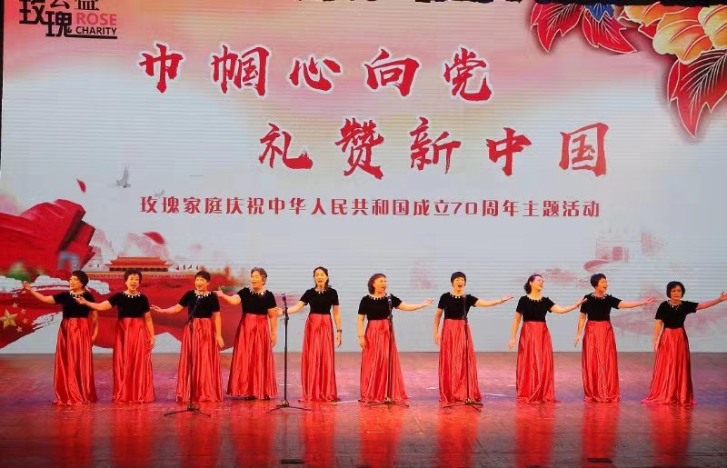 【香港商報網訊】記者 李苑立 報導:正值中華人民共和國成立70周年之際,9月19日下午,廣州市民政局福彩金支持,由廣州市婦聯、廣州市社會組織管理局指導,廣州市婦女兒童社會服務中心、廣州市巾幗社會工作服務中心、廣州市兒童活動中心、廣州市社會組織聯合會聯合主辦,廣州地鐵集團、廣州酒家、沙園巾幗藝術團等多家組織共同支援的“巾幗心向黨 禮贊新中國”玫瑰家庭慶祝中華人民共和國成立70周年專題文藝匯演在廣州舉行。廣州市婦聯主席劉梅、廣州市社會組織管理局領導、困境母親、巾幗志願者、愛心企業代表等700餘人出席了本次活動。