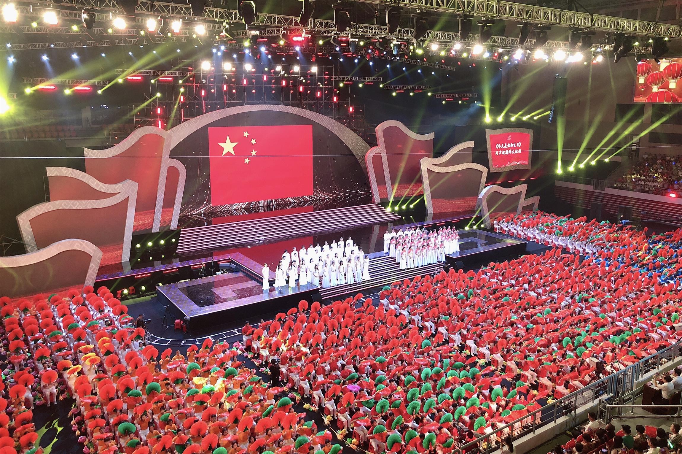 整場活動以「紅色」為主基調,以「愛國情懷」貫穿整場活動的情感「燃點」,活動着重儀式感、參與感、現代感,呈現南寧元素、民族元素、時代元素,為新中國70周年華誕獻上深情的祝福。