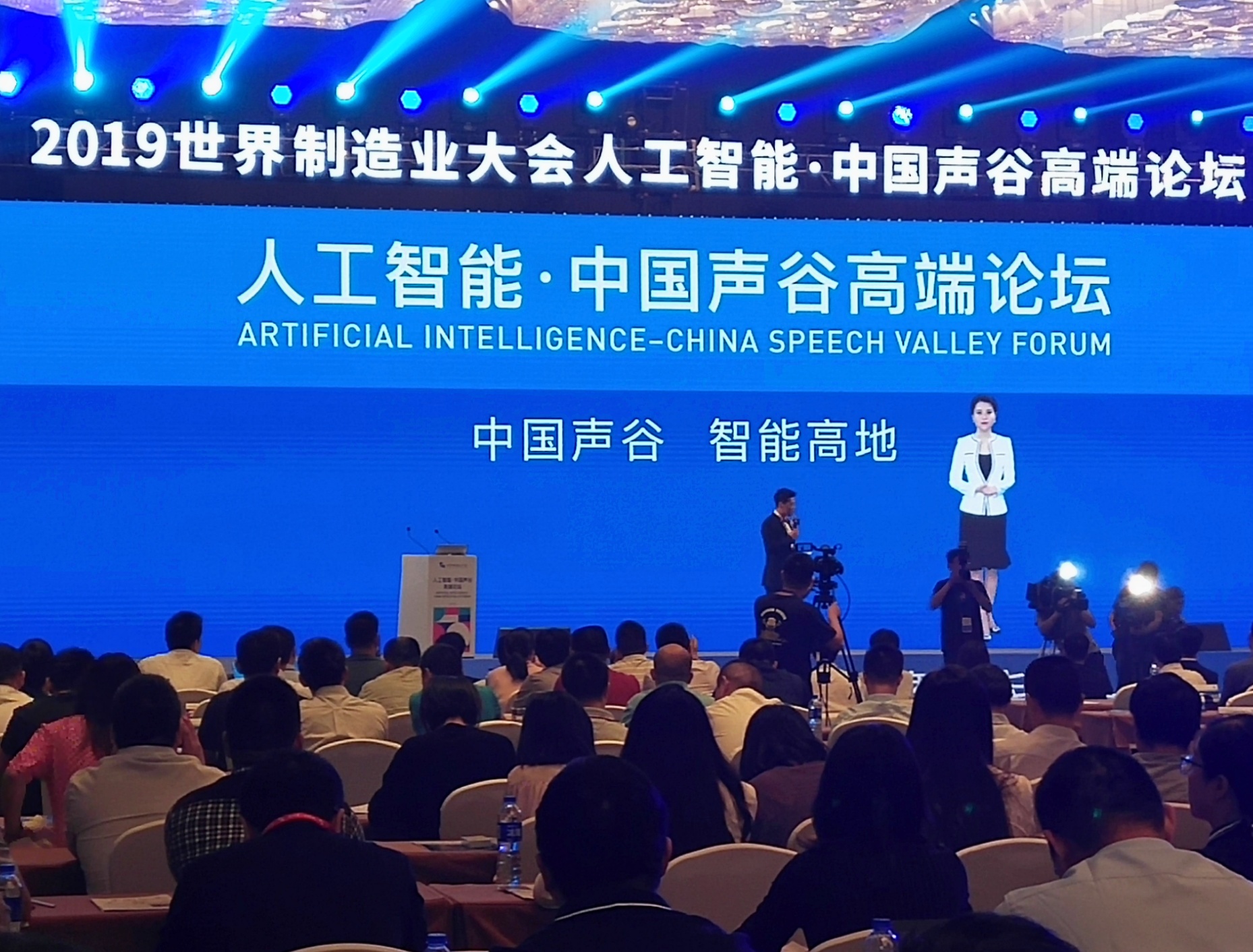 “不同語言間的機器翻譯、多種公文的智慧寫作、很多機器上的人機對話,處處都體現了人工智慧。還有我們平時生活中,從機場、車站刷臉進站,旅行中無人機拍照,到語音辨識口語教學、人臉識別刑偵破案及AI輔助醫療診斷…越來越多的“AI+”應用場景落地,變革著我們的生活,當然也包括我。”論壇現場,小晴與主持人積極互動,為嘉賓講解了中國聲谷產業集群目前的發展情況以及人工智慧在生活中的應用場景。小晴豐富的知識儲備以及風趣的主持吸引了現場嘉賓的眾多稱讚,人工智慧技術也讓大會的呈現更具科技感。