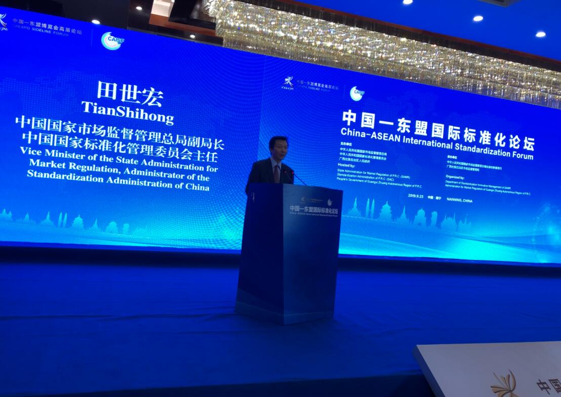 國家市場監督管理總局副局長、國家標準化管理委員會主任田世宏發表主旨演講。他表示,中國將繼續加大與東盟各國在國際標準化方面的交流合作力度,攜手共同參與,推動國際標準化發展。同時,將不斷完善國際標準的制定和實施機制,支持發展中國家更多參與國際標準化活動,加強機制性高層對話和高層互訪,共同推動常態化合作機制建設,開創標準區域合作新局面。