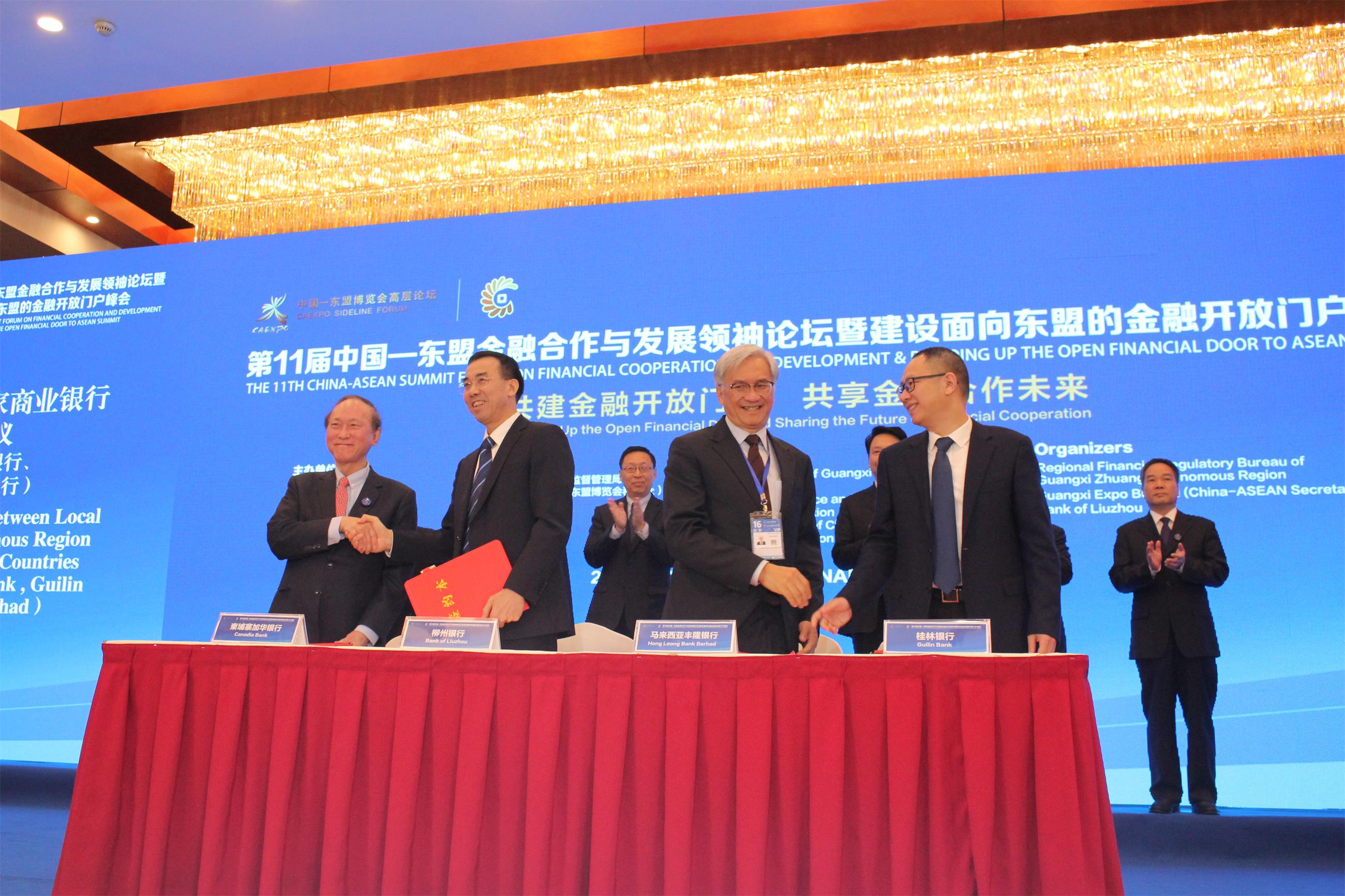 論壇上還簽訂了廣西壯族自治區地方金融監管局與建設銀行廣西區分行合作辦學框架協議、柳州銀行與柬埔寨加華銀行戰略合作協議、桂林銀行與馬來西亞豐隆銀行戰略合作協議。
