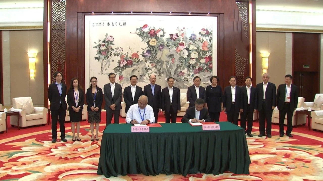 當天,廣西壯族自治區黨委書記、自治區人大常委會主任鹿心社在南寧會見香港運輸及房屋局局長陳帆、香港機場管理局行政總裁林天福一行,廣西壯族自治區黨委副書記、自治區主席陳武見證有關簽約。