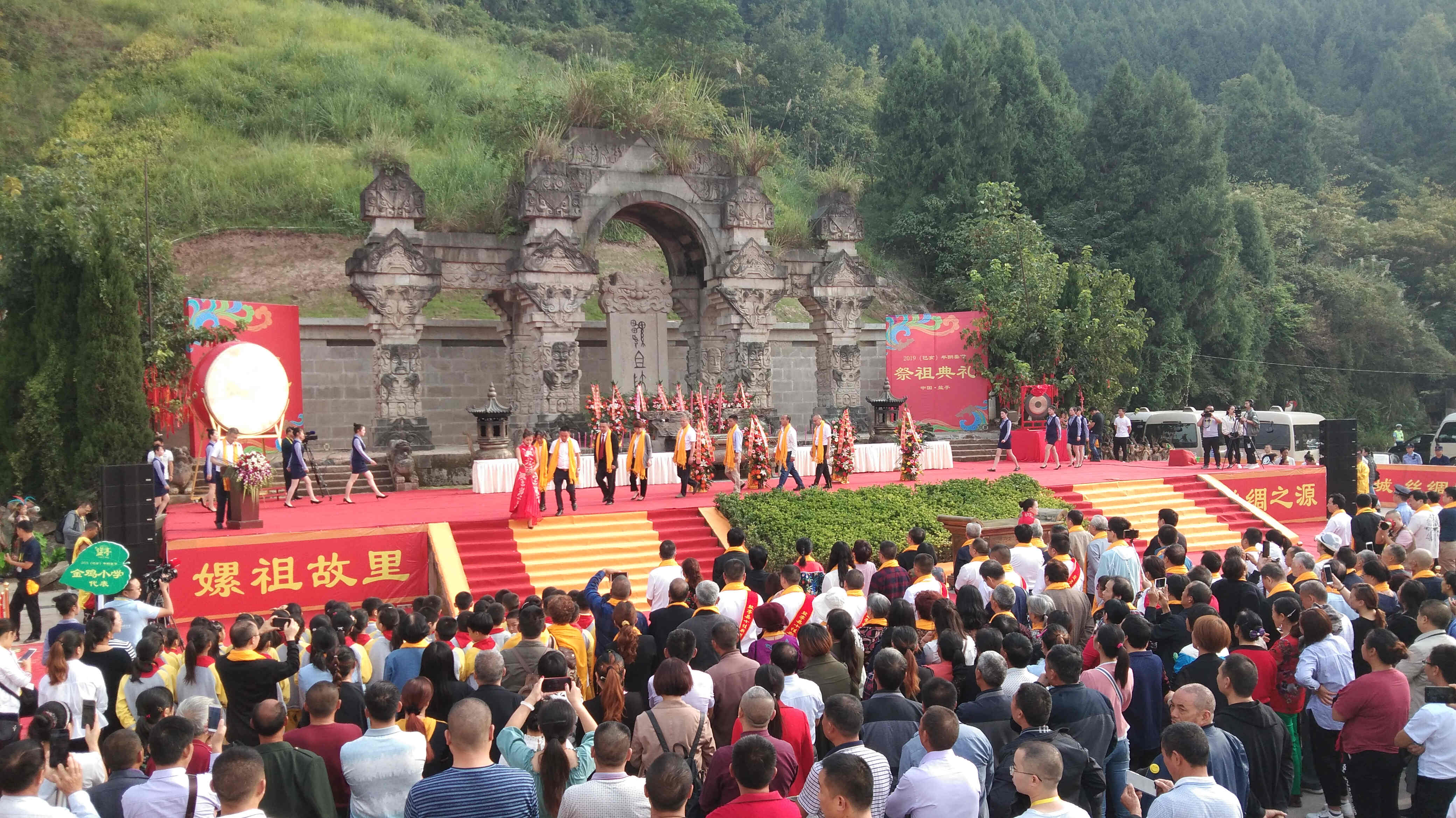 8時30分,鼓樂齊鳴,祭祖儀式正式開始。伴隨着宏偉莊嚴的音樂,社會各界代表依次走上祭台,先後向華夏母親嫘祖敬獻花籃、凈手上香、敬獻供品。「歲序己亥,宜祭時光,金菊開蕊,秋風送爽。酬蠶佳節,奉桂獻果,敬我女祖,普天同拜。…」陳華全恭讀祭文。嫘祖功德,萬古流芳。緊接着樂舞告祭,全體人員向嫘祖三鞠躬行施拜禮,祭祖儀式圓滿結束。