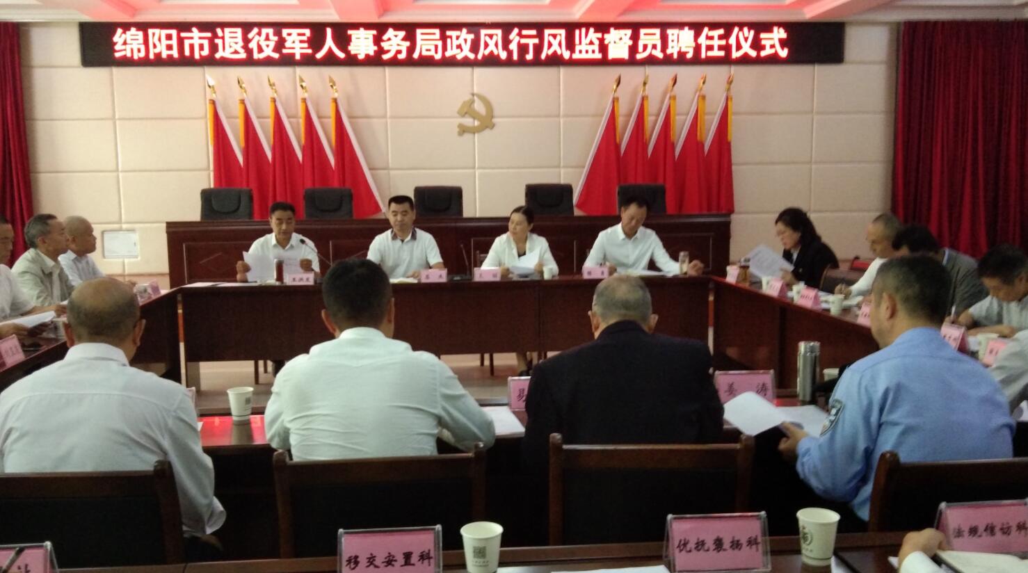 【香港商報網訊】9月24日,四川省綿陽市退役軍人事務局召開政風行風監督員聘任儀式。會上宣讀了《綿陽市退役軍人事務局關於印發聘請政風行風監督員工作方案的通知》和《綿陽市退役軍人事務局關於聘任馬遠學等二十名同志為政風行風監督員的決定》,市退役軍人事務局黨組書記、局長蘇傑為現場參會的監督員頒發了聘書並講話。