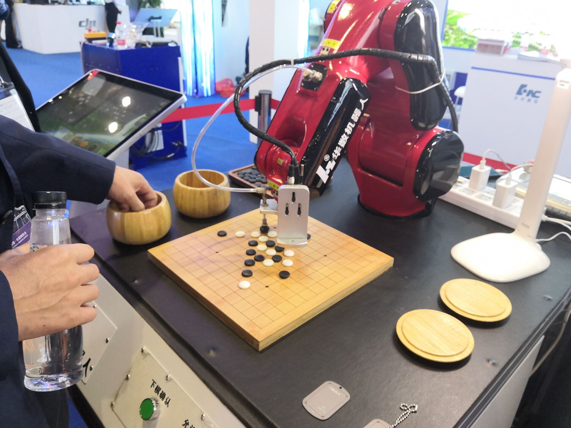 在本次展覽中,我較為感興趣的便是中國的先進科技。華數科技的機器人讓我目睹了人類與機器的對弈,參展的觀眾在棋盤上與機器人鬥智鬥勇,兵分三路最終贏了五子棋局。在一旁觀戰的我最初認為此戰毫無懸念,人類不費吹灰之力便可獲勝。然而在棋局下到一半,機器人卻屢屢把出路堵死,讓對手不得不另闢蹊徑。華數機器人雖在棋局上大展身手展現人工智能魅力,卻依然有值得改進之處。在這盤棋局中機器人看似見招拆招,卻沒有自己贏的「套路」,若是有一天程序得以完善,機器能運用自己的套路與人類對弈,那才真的是智慧的較量。