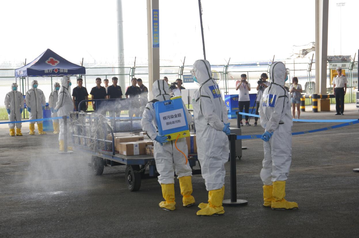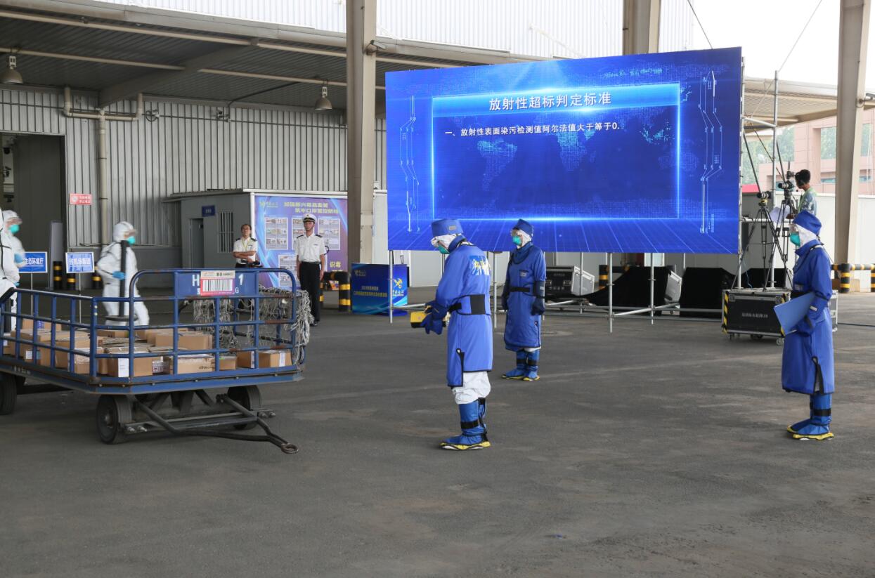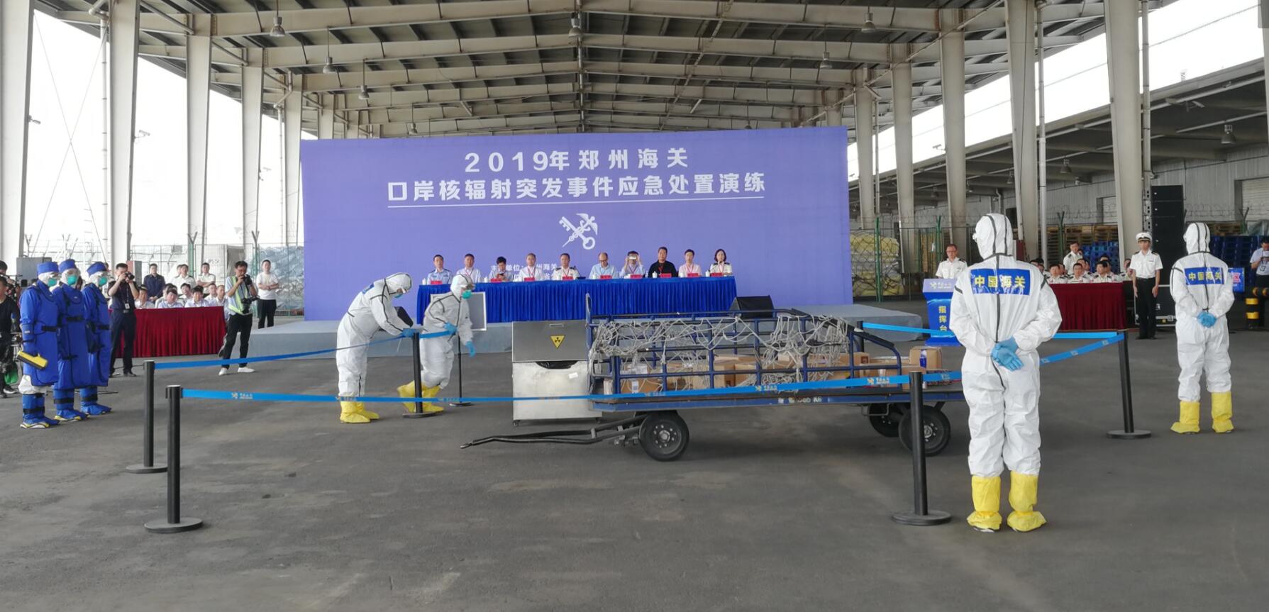 此次演練模擬情景為鄭州新鄭國際機場進境快件在經過海關核輻射監測裝置時引發報警,鄭州機場海關現場關員經初步判定為核輻射超標,不能排除涉恐襲擊嫌疑。依據《海關核輻射監測工作規程》《鄭州海關監管現場突發事件應急預案》,多部門聯動,快速反應、沉着應對、科學處置,依法科學有效地完成應急處置任務,保障了人民生命健康安全。