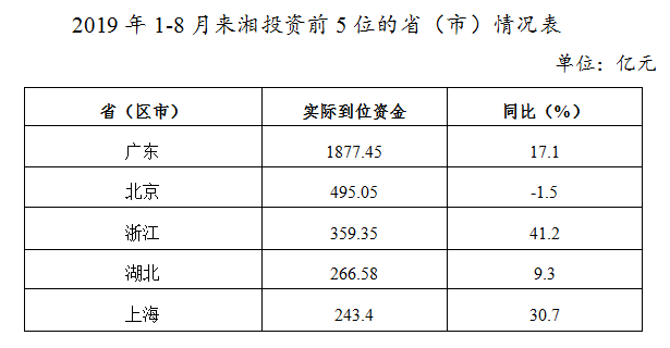 實際到位內資額居前五位的市州:長沙市(801.88億元)、郴州市(479.31億元)、岳陽市(465.43億元)、株洲市(385.37億元)、常德市(360.31億元)。
