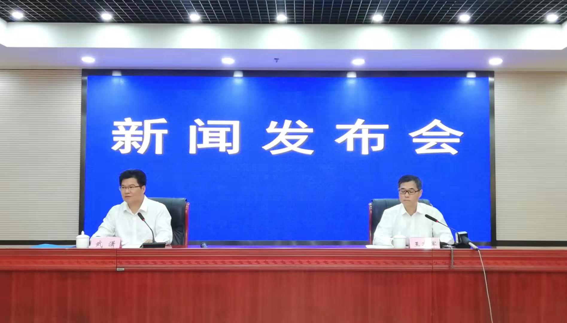 「安徽省新一代人工智能產業基地建設實施方案」新聞發佈會現場.左,安徽省委宣傳部新聞發佈處處長武瀟主持新聞發佈會,安徽省經濟和信息化廳副廳長王有軍介紹相關情況並回答記住提問(孫軍/攝)