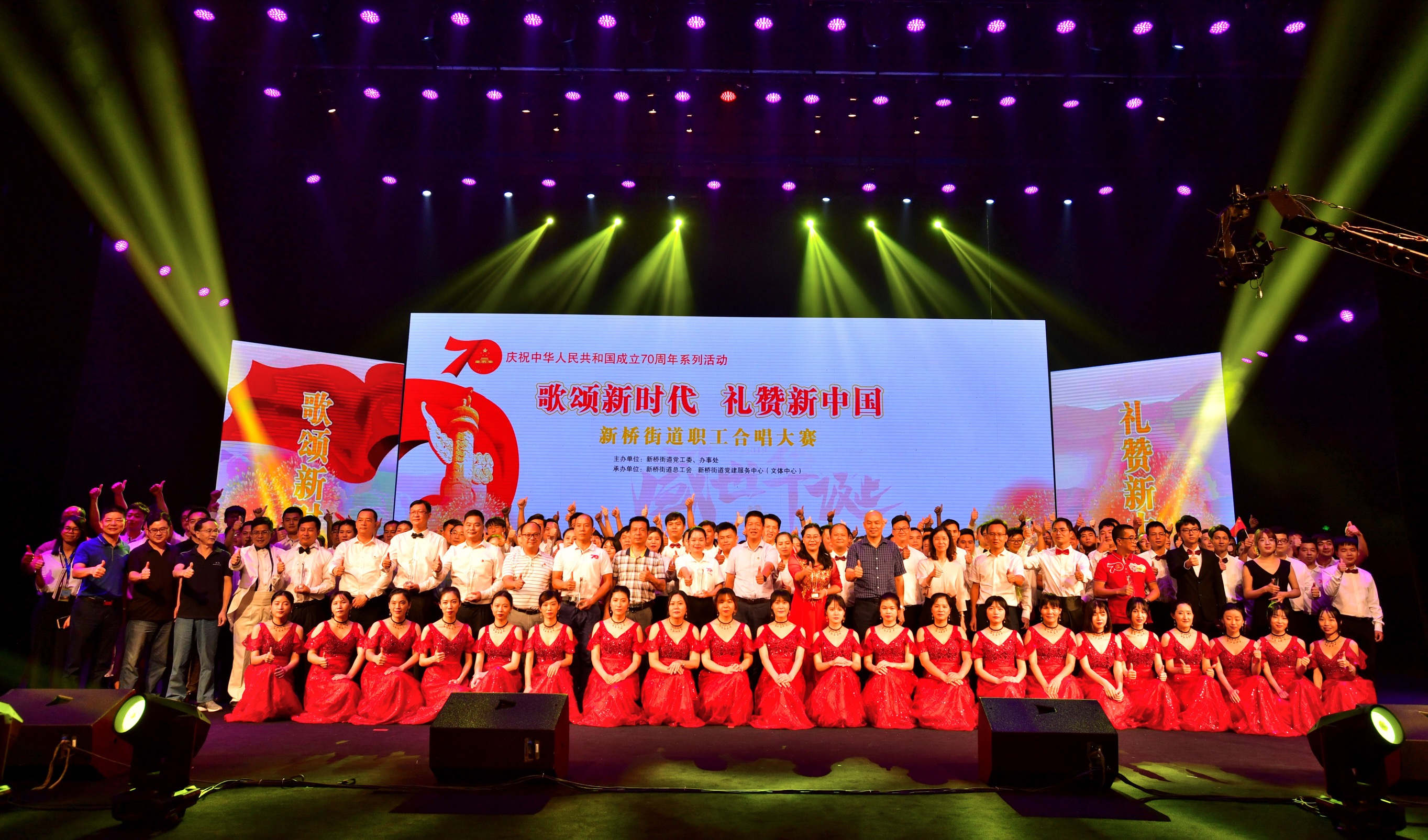 【香港商報網訊】 為慶祝中華人民共和國成立70周年,謳歌新中國70年來的光輝歷程和偉大成就,9月27日晚上,新橋街道舉辦慶祝新中國成立70周年「我和我的祖國」職工大合唱比賽。區總工會副主席莫鍵華,新橋街道黨工委書記衛樹強,新橋街道黨工委副書記、辦事處主任宋德東等領導出席活動。