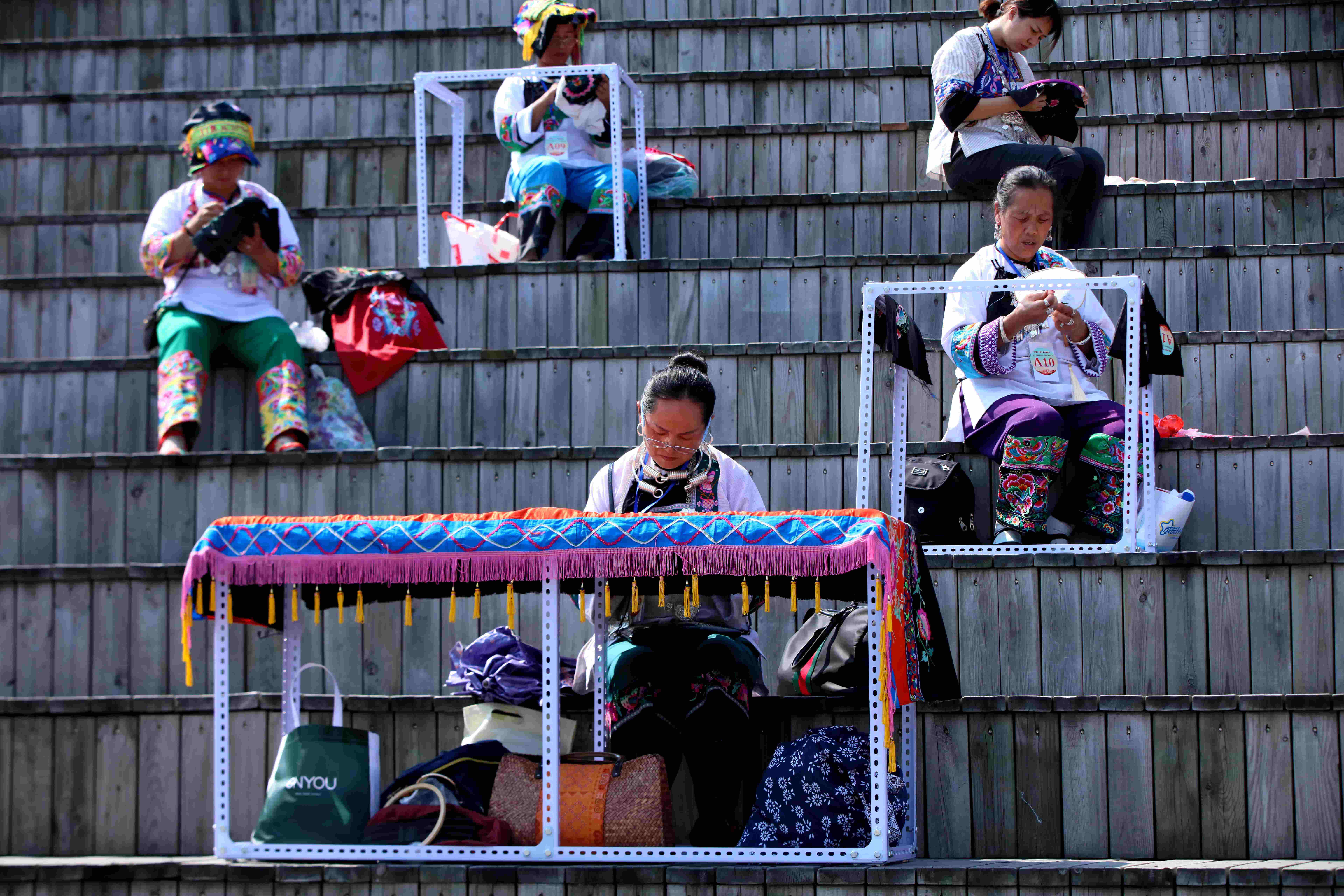 【香港商報網訊】記者 張思靜 報導:9月28日,以“壯麗七十年·繡出新時代”為主題的首屆武陵山區刺繡大賽在湖南張家界大峽谷風景區舉行,來自湖北、重慶、湖南等地的近70名民間刺繡藝人同台競技,用靈巧的雙手向中外遊客展示精湛的刺繡技藝。
