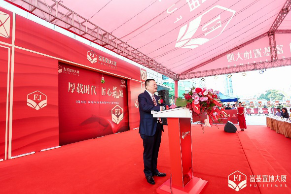 在主持人的介紹下,歌蘭興業集團董事長李建超先生上臺在對嘉賓的到來表示熱烈歡迎之餘,同時對歷經二十四載的歌蘭興業集團進行了介紹,而承載歌蘭興業開發運營經驗的富基置地大廈,希望能贏得客戶們的喜愛。