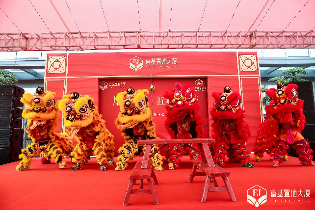 伴隨著激昂有力的鑼鼓敲擊聲,雄壯威武的醒獅將全場氣氛瞬間推至高潮,在眾多來賓和各大媒體的見證下,富基置地大廈相關領導共同登臺揭幕“厚載時代,匠心築城”卷軸推扛,帶著美好的祝願,富基置地大廈體驗中心暨樣板空間正式開放,恭迎八方來賓,一睹華美精緻的真容。