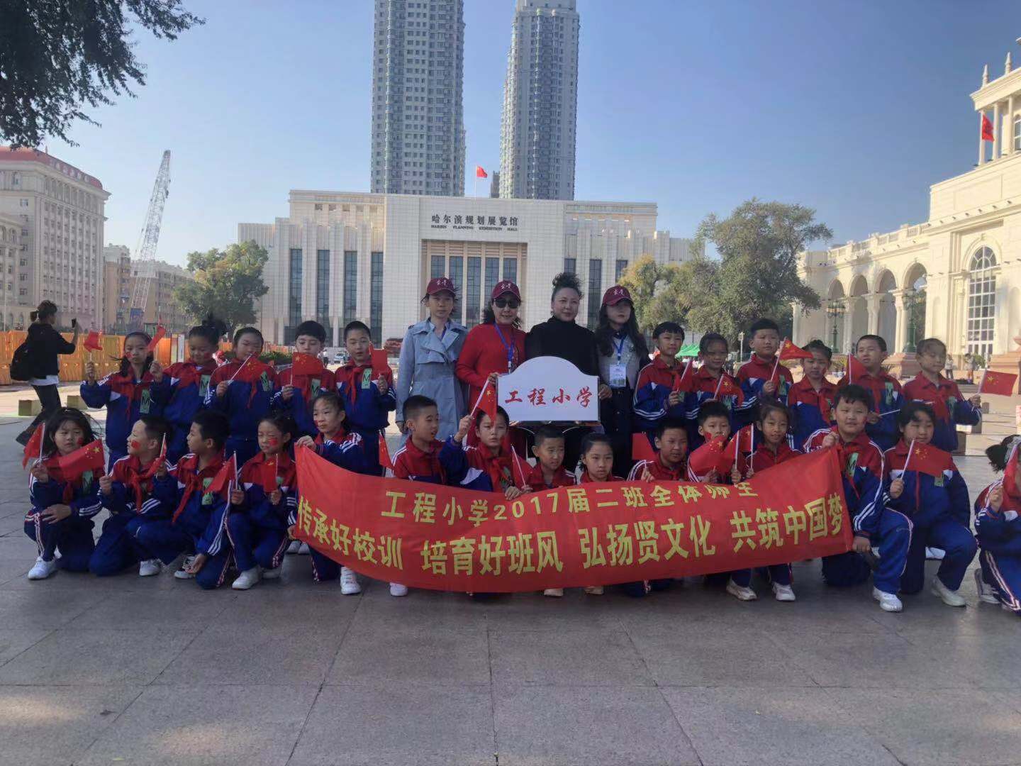 「繪城市宏圖 為祖國慶生」千人共繪大板畫活動中,有來自全市的520個學生家庭、近1600人在531平方米的畫板上,共同繪製冰城美景,盡展盛世歡歌的場面。520個家庭,寓意「我愛你」中國;畫卷總面積531平方米,比擬哈爾濱總面積5.31萬平方公里。來自道里區的六所小學的部分班級集體報名參加了此次活動。孩子們和小夥伴們一起,拿起手中的畫筆,用色彩塗抹自己家鄉的美麗,完成對新中國成立70周年的慶祝和獻禮。