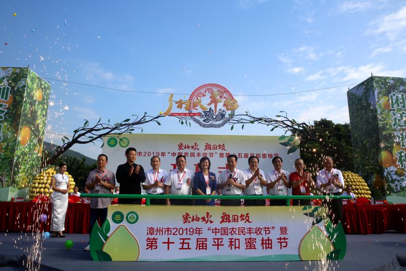 【香港商報網訊】9月29日上午,漳州市2019年「中國農民豐收節」暨第十五屆平和蜜柚節開幕式在福建平和縣小溪觀音山舉行。