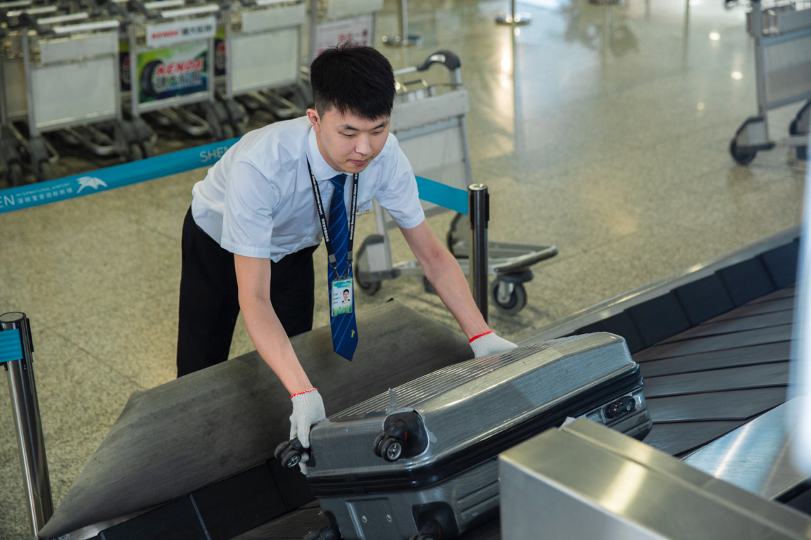 在南京機場9號行李轉盤,深航江蘇分公司在轉盤上貼了醒目黃色的分隔標記,不僅起到了行李分區的作用,還在標記上印上了笑話,讓等待時光充滿樂趣。南京特有的夫子廟小吃—地道的「秦淮八絕」也被製作成了逼真的模型,在行李尚未傳出時,鴨血粉絲、牛肉鍋貼,鹽水鴨、赤豆元宵一道道小吃先行傳送出來,能直觀地了解南京的小吃文化。另外,深航行李裝卸員在往傳送帶上放置行李的時候會將行李箱的把手統一向外放置,以便於旅客提取。在行李轉盤出口位置,有專門的「白手套」工作人員歸置行李,為旅客行李「保駕護航」。遇到下雨天,「白手套」會用抹布擦拭被雨水打濕或帶有污跡的行李。